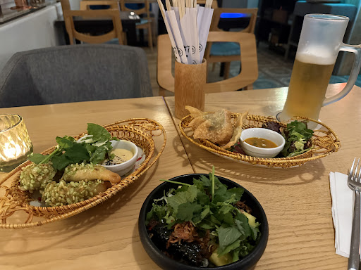 Read moreDas Essen war gut. Preis/Leistung allerdings unterirdisch. Für die Vorspeisen fielen schon mal 27€ an (!!) siehe Foto. Für 4 Wantan, 3 Shrimps und 2 LaLot Röllchen. Nur mal zum Vergleich: bei andern Vietnamesen bekommt man zum selben Preis 5 in LaLot gewickelte Hackröllchen, die auch noch besser weitaus sind 🫣. Und auch die Hauptspeise: Phô = Portion ebenfalls viel zu klein. Garantiert keine 40 Gramm Fleisch. Ich vergleiche wieder mit dem anderen Lokal und dort kostet die vergleichbare Portion wieder nur ein Drittel. Und zu guter Letzt: die Bedienung war nett aber sehr überheblich. Ich bestellte die Hauptspeise zum mitnehmen und ging sicher, dass die Nudel getrennt von der Suppe verpackt werden. Das erzeugte bereits einen sehr abschätzigen Kommentar. Und dann erlaubte ich mir noch zu fragen, ob ich auch zur Phô Chilis mitbekommen habe. Ja selbstverständlich war die betont überhebliche Antwort. Und nein: selbstverständlich waren null Chili (und null Limette) dabei. Mein Fazit: bemüht aber komplett überteuert und noch dazu ungerechtfertigt arrogant.