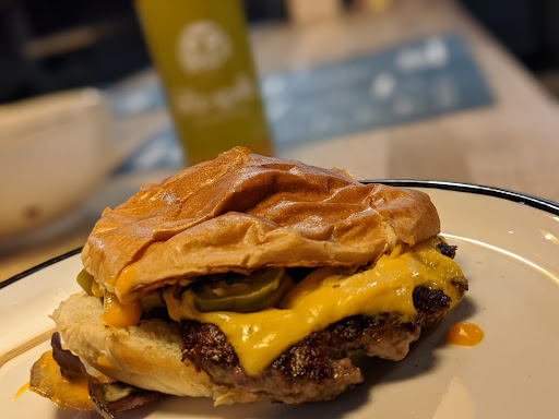 Read moreAls wir gegen spät abends ankamen, wurden wir erstmal lässig in Empfang genommen und haben dann sofort auch Speisekarten bekommen. Die Bedienung hat unsere Bestellung dann entgegengenommen, wobei es aber ein kleines Verständigungsproblem gab, denn die Musik war etwas zu laut. So konnte man die Bedienung und sich gegenseitig kaum richtig verstehen. Auch möchte ich erwähnen, dass sich trotz der lässigen Stimmung, welche ich nicht kritisiere, sich ein oder zwei Mitarbeiter besonders unprofessionell verhalten haben. Denn ein Mitarbeiter hatte der Bedienung etwas auf seinem Handy zeigen wollen, während die Bedienung noch unsere Bestellung aufnehmen wollte. Das ist nur ein kleiner Punkt, aber es machen eben die kleine Dinge die Customer Experience aus. Ein weiterer Mitarbeiter, wenn nicht sogar Chef/Mitarbeiter in höherer Position war dann etwas ausfallend gegenüber seinem Kollegen, der anscheinend ein paar Teller fallen lies, das muss auch nicht unbedingt vor Kunden passieren, also das Anschreien, das mit den Tellern passiert den Besten. Nun zum Geschmack und dem Preisleistungsverhältnis unserer Burger. Wir hatten einmal einen veganen Hamburger und einen veganen Chili Cheese Burger. Beide kosteten ungefähr 10€ ohne Beilagen, was schon teurer als normal ist, aber noch im Rahmen. Die Burger waren nett zubereitet und schmeckten auch gut, aber nicht vergleichbar mit Beyond Meat, etc. Für den Geschmack gebe ich 7 / 10 Sternen und für das Preis- / Leistungsverhältnis gebe ich 6 / 10 Sternen. Zudem hatten wir noch ein paar Fritten bestellt, die ebenfalls gut waren, aber trotzdem, bis auf die Form, nichts außergewöhnliches waren. Hier gebe ich 9 / 10 Sternen beim Geschmack und für den Preis 8 / 10 Sternen. Die Fritten haben 4 Euro gekostet, es hätte aber auch ruhig mehr sein dürfen als extra Beilage für 4 €. Positiv anzumerken ist auch noch, dass uns angeboten wurde, noch etwas sitzen zu bleiben, da es während unseres Aufenthalts angefangen hat,...