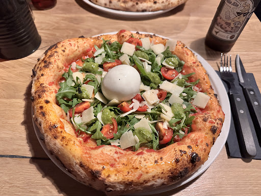 Read moreWe came here after a long day of sightseeing in Nuremberg. There were no problems with finding a spot, though we reserved just to be sure. First impression with service was also good, we got the menu quickly and also no problems with ordering. They also paid a lot of attention after we received the pizza taking the empty plates quite quickly and asking if we were good or needed anything more. Why 3/5 then? First of all there were no utensils on our table and grissini that were on others, we thought it would arrive with pizza but unfortunately was never noticed. Secondly we had a feeling that orders are done in a very weird order, meaning the online/to go were done with higher priority. We waited 35-40 minutes for our pizza after ordering, which is very long for a Neapolitan in my opinion. Remember that the restaurant wasn't fully booked, so it's not that problem and we saw a dozen pizza boxes leaving. When it comes to pizza it is a good proper Neapolitan though I had a feeling that they use semolina on the pizza shovel since there were burned bits on the bottom. Apart from that, we made a mistake and didn't ask before if buffalo mozzarella is placed before baking the pizza or added at the end cold and it's the latter option here, of which we are not the biggest fans. It's fine overall, but you might want to know. One day we have to check also the other branch in Fürth, since I believe there is potential here but I need to...