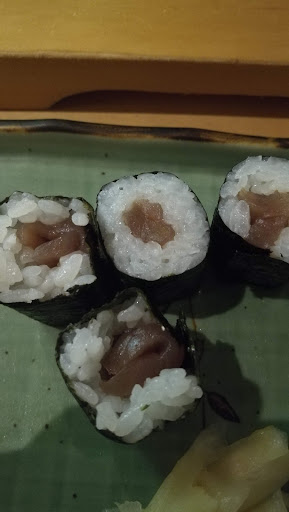 Trinken & Essen: Wein kommt in massiven Weingläsern, wie man sie aus Wirtshäusern kennt. Das "stille Wasser " (nicht Tafelwasser) schmeckt wie Leitungswasser. Die laminierten Holzbretter zum Servieren sind abgenutzt und wirken billig. Das Sushi kann man nur exakt so bestellen wie in der Karte gezeigt. Steht bspw. "6 Nigiri" da, so kann man sich selbst diese nicht aussuchen. Ein Überraschungsmix ob wann will oder nicht - noch nie gesehen. Gyoza geschmacklich i.O., das Sushi unterdurschnittlich! Geschmacksarm, der Reis gar geschmackslos und recht körnig.
