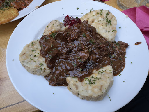 Read moreWir waren auf Empfehlung im Palais Schaumburg in Gostenhof. Zunächst waren wir von der Location positiv beeindruckt. Der kleine Biergarten vor dem Eingang zur Kneipe ist entzückend. Die Innenräume sind fränkisch rustikal und einladend gestaltet. Nachdem wir an der Theke bestellt hatten, wurden die Gerichte an den Tisch gebracht. Die Zubereitung der Speisen war ansprechend und regte unseren Appetit an. Leider waren wir vom Sauerbraten mit Klößen so enttäuscht, dass ich mir die Zeit nehme, um eine Bewertung abzugeben. Optisch versprach der Braten viel, aber leider konnte man ihn nicht genießen. Das Fleisch war trocken, zäh und geschmacklos. Wir vermuten, dass es möglicherweise mehrmals aufgewärmt wurde oder noch schlimmer – vom Vortag stammte. Leider betraf dies nicht nur mein Gericht, auch meine Tochter empfand Übelkeit in Bezug auf den Geschmack und den Geruch. Zusätzlich war die blonde Bedienung sehr unhöflich, was zu unserer Enttäuschung beitrug. Aufgrund des missglückten Bratens und des unhöflichen Verhaltens der Bedienung werden wir der Kneipe keine zweite Chance geben und sie auch nicht...
