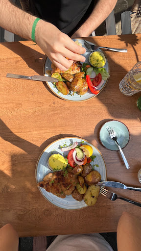 Zum Service: Leider haben wir alleine auf die Getränke eine halbe Stunde warten müssen, was an einem so warmen Tag wie gestern wirklich schade ist. Als wir bezahlt haben kam die Kellnerin mit dem Kartenzahlgerät und hat nicht einmal ‚Danke‘ oder zum Schluss ‚Tschüss‘ gesagt. Stattdessen hat sie sich nach erfolgter Zahlung einfach an den Nebentisch umgedreht und diesen abkassiert und uns damit wortwörtlich den Rücken zugewendet. Der Außenbereich war zwar voll, aber innen nur ein einziger weiterer Tisch, sodass ich nicht denke, dass die Kellnerin großartig im Stress gewesen ist.