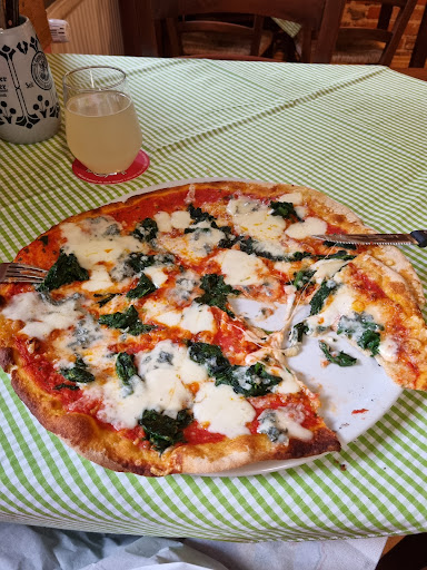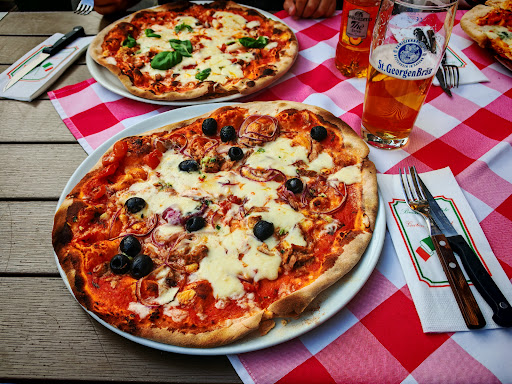 Schlichte kleine Pizzeria mit freundlichem Service, leckerer Pizza und ausgezeichnetem Preis- Leistungs-Verhältnis. Wir haben an einem der Tische im Außenbereich Platz gesessen, drinnen ist es klein und gemütlich. Getränke in Selbstbedienung (zumindest Bier und Softdrinks). Gläser gibt es dazu an der Theke, an der man dann auch sein Essen bestellt. Vor dem Essen wurde der Tisch noch eingedeckt. Die Pizza wurde nach ca. 30 Minuten serviert. Wir hatten jeweils eine Calzone, Meeresfrüchte, Vier Käse und Thunfisch-Zwiebel, dazu einen Salat Italia. Die Pizze waren reichhaltig belegt, mit frischen Zutaten. Der Rand war an manchen Stellen vielleicht etwas sehr knusprig. Absolut lecker und ausreichend für den großen Appetit. Der Salat war auch gut und abwechslungsreich. Den leckeren Espresso hinterher gab es dann auch noch aufs Haus. Wir wurden freundlich verabschiedet und kommen...
