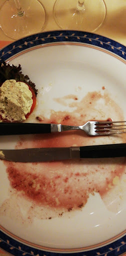 I. Tartare as starter: the meat was mixed with paprika and meat taste was completely covered; II. The bread we got with the tartare was old, re-warmed and re-cooled; III. I ordered an Argentinian Rumpsteak 250gr. medium rare. Doubt about the weight, wrong cut, a bit overcooked and almost well done, almost tasteless, tougher than expected. French fries too salty; IV. Hungry and still optimist I ordered an American Roastbeef 450gr. medium rare. Right weight, right cut, again overcooked but fortunately kinda tasty although tough; V. Less optimist, incredulous meatlover - but still curious - I ordered an American Ribeye 340gr. medium rare. The waitress asked me if I am eating at home or not (doubtful humor), steak arrived, wrong cut, totally fatty and soggy. It was neither possible to define the doneness, left 1/4; VI. Dessert menu poor, mainly ice creams, no cakes, decided for the typical Apple Rings fried, fortunately they were good.