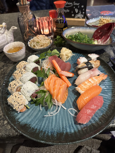 Read moreDas Restaurant wurde scheinbar erst Eröffnet, da draußen noch umgebaut wird. Das Ambiente ist modern und schön. Das Personal ist größtenteils freundlich und aufmerksam. Das Essen war okay bis gut. Leider sind einige Sorten vom sushi ziemlich scharf und somit für mich und meine Begleitungen ungenießbar, obwohl in der Speisekarte NICHTS dabei stand, dass es scharf ist. Andere hatten nämlich einen Hinweis darauf, dass es scharf ist. Das finde ich sehr schade... Grade bei dem hohen Preis! Wir haben zu viert fast 200€ gezahlt... Parkplätze gibt's soweit ich weiß leider auch nicht, weshalb man an der Hauptstraße parken muss, wenn man Glück hat einen Platz zu finden. Ich werde nicht nochmal kommen, da ich es Geschmacklich leider nicht so gut fand und die Preise mir persönlich zu hoch sind. Da gibt es andere Restaurants, die meinen Geschmack besser treffen.