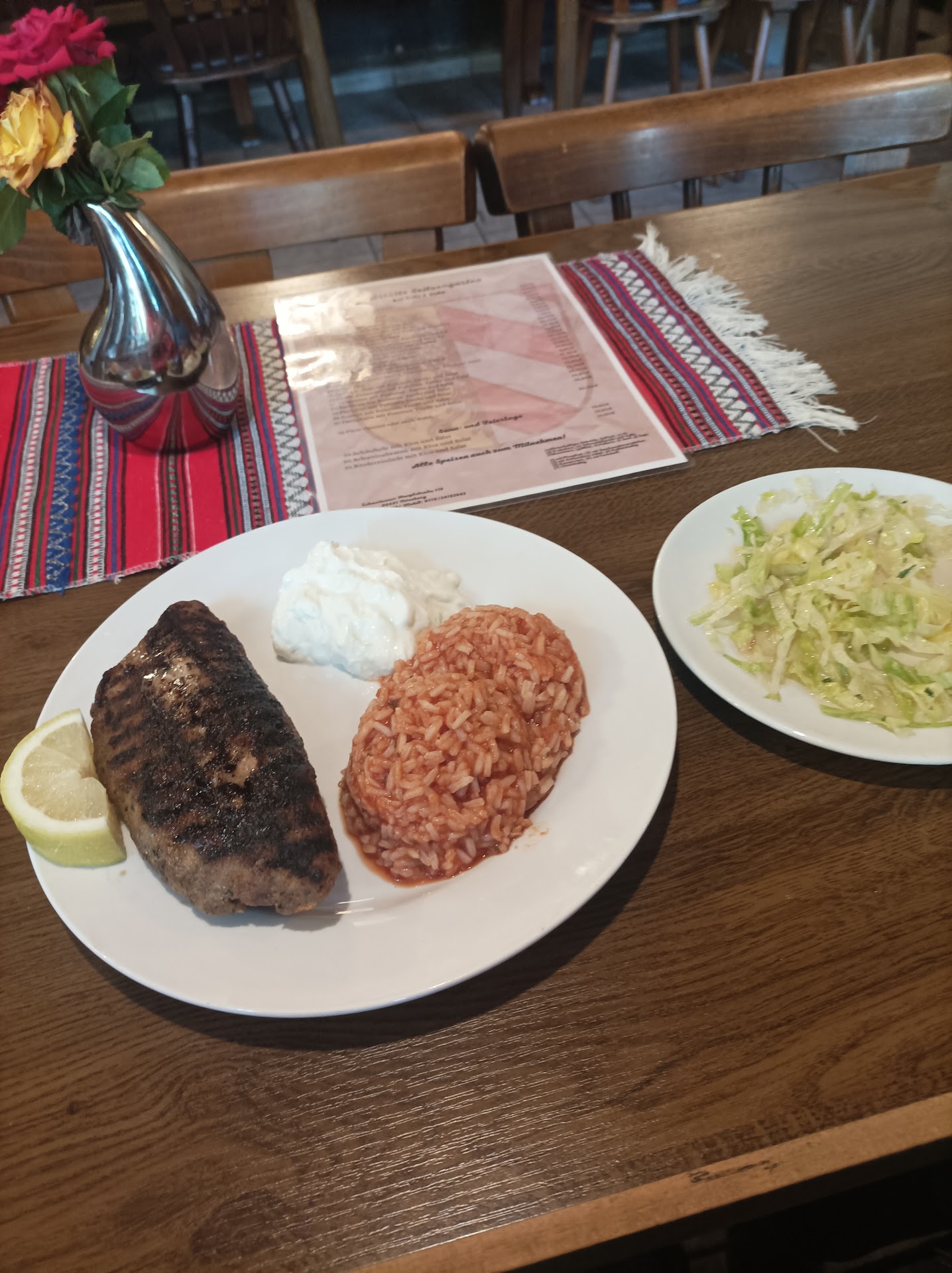 Read moreDas Essen ist hier sehr zum empfehlen. Ich habe hier ein Schweinebraten gegessen der ist auf der Zunge richtig gut zergangen .Die Knödel haben genau die richtige konsestenz und sind nicht zu hart.Geschmacklich ein Traum und dazu preisgünstig.Mein Mann hat Bifteki mit Tomatenreis und zatziki und ein Salat gegessen Dazu gab es eine dicke Scheibe Zitrone zum auspressen für das Bifteki.Alles in ganzen ein richtig gutes Geschmackserlebnis.service und Ambiente auch sehr freundlich und sauber und Hundefreundlich.Sehr...