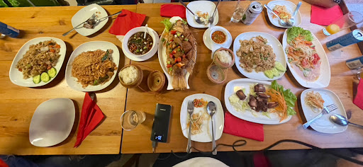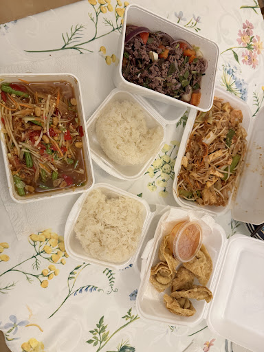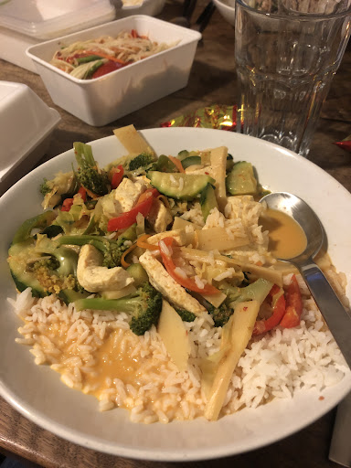 Read moreDer Laden befindet sich, recht unscheinbar, an einer Hauptverkehrsstraße. Wenn man hineinkommt, sieht man ein Samesurium an Dekoration und einen einfach ausgestatteten, aber sehr sauberen und gepflegten Laden. Aus der Küche kommt ein Geruch von vielen frischen Kräutern und Gewürzen. Die ältere Thai Dame sprach nicht viel deutsch, aber sie war sehr herzlich und die Verständigung klappte auch so sehr gut. Wir wollten essen mitnehmen und da wir vorab wussten dass es Wartezeiten gibt haben wir eine Vorspeise und Getränke dort gegessen. Die Sate Spieße waren hervorragend. Für den Preis von 6€ bekommt man 3 wohlmarinierte Spieße, reichlich echte und frische Erdnusssoße (nicht eine übersüßte, aus Erdnussbutter zusammengeplantechte Pampe), dazu einen kleinen Salat. Der Salat war herausragend. Er war mit frischen Kräutern angemacht und hatte als kleine Beigabe, einen in Honig fermentierten Knoblauch drauf. Aus diesem Honig war auch das Dressing gefertigt. Sehr süß, mit keiner Säure und trotzdem hat es funktioniert und war ein absolutes Highlight. Beim Rest hatten wir uns für ein rotes Curry mit Tofu, ein grünes mit Ente, einen lauwarmen Salat mit Rind und einmal fried Rice entschieden. Besonders zu erwähnen ist, dass man die Schärfe, trotz Angaben in der Karte, anpassen lassen kann und dies auch auf den Punkt umgesetzt wird. Salz könnte dem einen oder anderen etwas fehlen, aber dafür gibt es Salzstreuer (der Deutsche salzt halt recht viel;)). Jedes Essen war wundervoll abgeschmeckt, mit vielen frischen Kräutern, das Gemüse war knackig und auf den Punkt und das Fleisch gut mariniert und butterweich. Alles wurde frisch zubereitet, während wir da waren und das schmeckte man auch. Selbst die Qualität der Transportbehälter ist positiv zu bewerten, denn diese sind deutlich stabiler als man das von anderen Imbissen kennt. Alles in allem ein Erlebnis, hinter welchem sich so manches Restaurant verstecken...