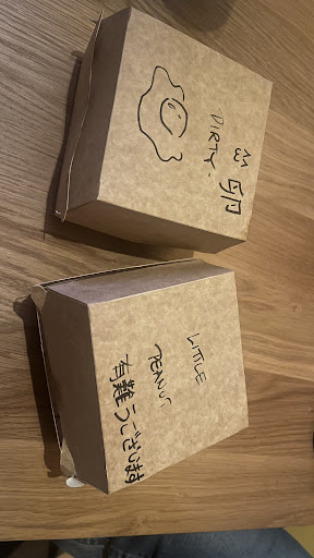 Read moreSo we ordered 2 Burgers and after carrying them home and taking it out from our bag, we saw this (see picture). I gave them a call and asked them why 有難うございます(thank you) and 卵(egg, this burger was with an egg XD) is written on our burger boxes. The server told us that she heard us talking in one of our previous orders in Japanese, that’s why she wrote this messages on our burgers. Very nice and lovely message. The burgers are always awesome. Love this place...
