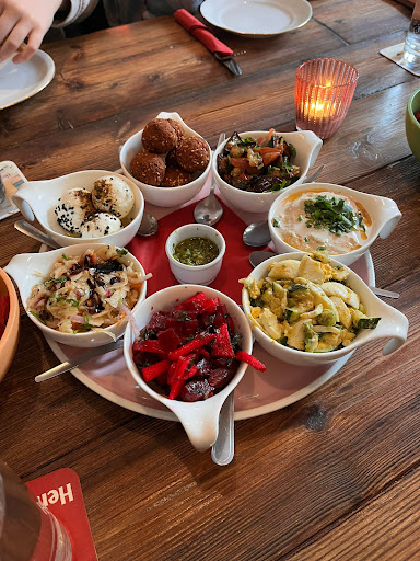 Read moreHeute ist für mich, was neues zum ausprobieren angesagt. Wir haben uns für die israelische Küche entschieden. Meine Frau kennt diese Küche bereits, für mich ist alles neu. Das Lokal liegt außerhalb der Innenstadt und etwas abseits in einer Nebenstraße. Das ist kein Nachteil, denn durch diese Lage und der urigen Einrichtung entsteht etwas besonderes (finden wir). Die kleinen Details überraschen, wie das Geschirr, was bei vielen von Oma im Schrank gefunden wird und meistens entsorgt wird. Hier wird es liebevoll verwendet und hat ein zweites oder drittes Leben gefunden. Die Speisekarte ist zwar nicht sehr groß, aber trotzdem umfasst es viele Variationen und jeder sollte was finden. Da das Lokal selber eher klein ist, empfiehlt sich eine vorherige Reservierung. Außerdem ist nur Barzahlung möglich, bitte beachten! Da das volle Potpourri dieser Landesküche getestet werden sollt, wurde zum Start eine kleine Vorspeisenvariation gewählt. Neben Humus, Falaffel und Orangenhuhn, fanden 5 weitere Köstlichkeiten zusammen mit dem warmen Brot den Weg in unseren Magen. Als Hauptgerichte wählten wir zum einem Kürbis gefüllt mit mildem Ziegenkase und mit Lavendel verfeinert, mit flambiertem Camembert getoppt dazu bunter Blattsalat mit Beeren-Dressing und karamelisierten Pekanüssen und zum anderen Zwetschgen gefüllt mit orientalisch gewürztem Rinderhack, Kräutern, Pinienkernen und Reis in Rotweinsoße gebacken sowie 2erlei Kartoffelpüree. Es war göttlich und jeder Bissen zerging auf der Zunge. Wichtig, es gibt wechselnde Tageskarten, die Gerichte können, weil sie frisch zubereitet werden auch variieren. Jeder Besuch ist immer wieder eine Überraschung. Mutig, wie wir waren, haben wir uns auch an den Nachtischvariationen versucht. Die Küche arbeitet mit frischen Zutaten, daher kann des vorkommen, dass es heißt, ist aus. So ist es mit unserer ersten Wahl der Creme Brûlée gewesen. Als Alternative haben wir uns für das Mascarpone-Creme-Törtchen auf karamelisierten Äpfeln dazu salzige Toffesoße entschieden , was uns mehr als entschädigt hat. Dazu gab es frischen Minztee (kein Beutel) und einen Arabischen Mokka mit Kardamom. Alles im allem eine runde Sache. Ein Hinweis noch: Der Eingang ist nicht vollständig barrierefrei. Das ist aber nicht schlimm, das Personal hilft, wenn man fragt. Der Rest des Lokales ist mittlerweile barrierefrei. Empfehlenswert. Wir kommen...