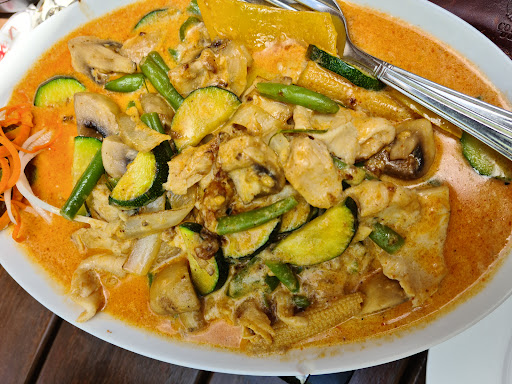 Geschmacklich liefert die Küche gute, frische Thaiküche mit authentischer Würzung. Die Portionen sind ausreichend, man wird gut satt – ohne Völlegefühl. Kleines Manko: Für eine winzige Schale Koriander wurden 50 Cent extra berechnet – das wirkt ein wenig kleinlich bei einem Kraut, das in der Thaiküche ohnehin Standard ist.