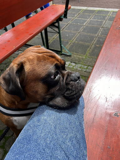 Run by a very very nice Greek gentleman (maybe owner or manager…I don’t know) Very tasty food, huge portions. (I don’t have photos of the food, I was so busy shoving it down my face:) Not cheap but not expensive. All together really nice. And naturally really nice customers too… Sweet, kind, dog friendly. Lio enjoyed it as well and he has a girlfriend now, another German boxer named Coco (or maybe...
