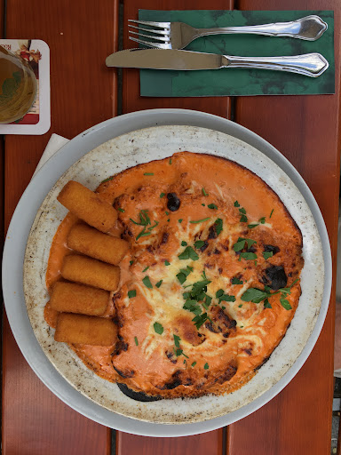 Netter Wirt, renoviertes Ambiente: schöner als bei Kitsch Griechen! Radler und Weizen haben geschmeckt. Was nicht überall in ähnlichen Lokalen der Fall ist! Allerdings mussten wir eine ganze Stunde auf normales Essen warten, Schnitzel und 3 Medaillons, dabei hatten 2 Tische schon am Anfang unserer Wartezeit ihr Essen. Der 3. Tisch war ganz fertig. Man muss es sich halt überlegen, ob man Zeit mitbringen...