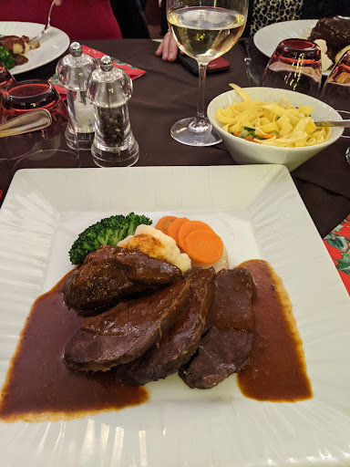 Read moreThis small hotel has surprisingly a lot of space to serve people wanting to use the restaurant. We had a group on the main floor, but I noticed that there is a small seating area 1/2 level down, and a number of tables in a cave like basement area which looked really cute.||Service was very good, the rump steak with onions & a small side of vegetables was perfectly prepared and delicious. It came with a great side salad with very fresh greens and a slaw at the bottom of the bowl which you toss through the salad. The Hokkaido ginger pumpkin starter soup is excellent. Killer...