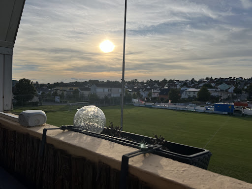 Gestern waren wir bei sonnigem Sommerwetter dort und wurden sehr angenehm überrascht! Die Bedienung war sehr freundlich und unkompliziert und fand uns noch einen Platz auf der Terrasse. Der Blick über den Sportplatz und auf das Wohngebiet Eich ist jetzt nicht umwerfend aber schön genug für uns ☺️ Das Essen kam trotz voller Terrasse angemessen schnell und war sehr lecker. Es gibt einige vegetarische Optionen und Salate aber wir entschieden uns halt doch für Hamburger und Kochkäseschnitzel. Lecker in Butterschmalz gut ausgebraten, war das Schnitzel richtig gut! Auch der Burger kleckerte und schmeckte wie es sein muss!