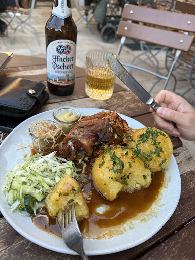 Read moreDas Essen hat leider überhaupt nicht geschmeckt. Wir hatten 5 verschiedene essen. Eins war ok. Die anderen waren nicht besonders gut. Der Platz an dem wir saßen war sehr schön zugegeben. 2x Suppe 2x kleines Essen und Pommes hat dann zusammen 70€ gekostet. Ziemlich überteuert. Die Portionen waren sehr klein Mein "bayerischer Salat" war 5 Salatblätter und ein geschnittenes Radieschen dazu ne im Streifen geschnittene Bockwurst und eine alte gebratene Breze. Das Gulasch extrem heiß. Last but not least gabs dann auf der Rechnung noch eine saftige Service pauschale von 6,80€. Einfach mal 10% drauf geschlagen. Leider haben wir das erst später auf der Rechnung gesehen die sie erst behalten wollte. Sonst hätte ich nicht noch Trinkgeld gegeben. Fazit: unsere Erfahrung war sehr schlecht!