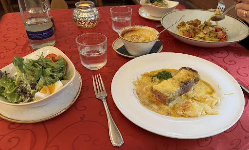 On our way back to Denmark from Zell am see, we had dinner at Bernard's. We had no reservations for table, but in this area, (south Germany - north Austria) you can easily get 2 seats at a bigger table, together with other people even if it's a high class restaurant. We had the most lovely food - I myself took the plate: 3 various fish from the lokal see, and normally not being so fond of desserts - I had to try a ginger-orange-thing.....I shall never forget this meal. I strongly recommend the restaurant - and at the table we learned from another couple - how great the hotel is. Important: Dogs allowed - also in restaurant - not to forget. Staff is prof - thoug the restaurant is big - you don't feel so, you sit in cosy small...
