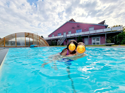 The apartment is nice and offers a modern interior. The kitchen comes with a spacious fridge and an oven and stove top to prepare food. The bathroom is very clean, and besides, a walk-in shower also offers a bathtub. The only thing we would change are the mattresses. The surrounding area seems to be peaceful. From the apartment, we had direct access to the pool. The pool can be covered, and that way, we even used it when it was drisseling some. Besides a fireplace for the evening to hang out at, the kids also had a playground to use on the property. There is a bakery and a butcher nearby in walking distance. For groceries, you will have to drive. The landlord is very nice...