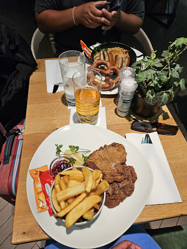 We had a schnitzel and nuhnberg sausage. The schnitzel was sadly fried in old oil or burnt. Overpriced as you had to pay extra to have the schnitzel served with french fries (surprisingly was the only option for potatoes even though the dishes was presented with ovenbaked potatoes).