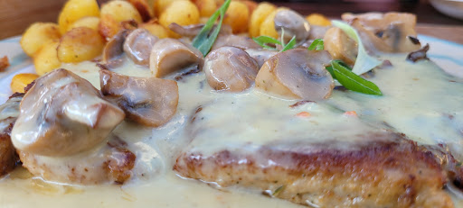 Erlebnis / Meinung: Es ist schade das ein so wunderschön gelegenes, Restaurant nicht für Behinderte zugänglich ist! Das Personal ist sehr freundlich, schnell und zuvorkommend! Das Essen ist extrem lecker, man schmeckt richtig das hier auf Convenienceprodukte verzichtet wird! In der Küche von Hand panierte, dicke Schnitzel, die trotzdem Butterweich sind. Eine Soße wie im Traum und dazu frische Pilze!