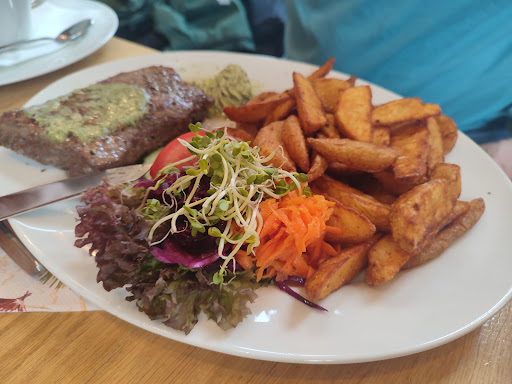 Vor Jahren mal bei "Mein Lokal Dein Lokal" gesehen. Ich weiß zwar nicht mehr, wer damals gewonnen hat, aber alleine für dieses Konzept hätte es schon Preise verdient. Ich jedenfalls war sofort Feuer und Flamme. Von Berlin aus extra her zu gondeln hat mein grünes Gewissen nie zugelassen. Dann kam Corona .... Langer Rede kurzer Sinn, ich habe den Brockenbauer nie vergessen und meine kleine Harzrundfahrt mit dem Krad extra so geplant hier zum Mittag einkehren zu können. Ich war sehr gespannt und hatte auch etwas Schiß enttäuscht zu werden weil meine Erwartungen so hoch waren. Wurden meine Erwartungen getroffen? Klares nein! Sie wurden nicht GEtroffen sondern ÜBERtroffen! Die Geschmacksknospen auf meiner Zunge haben Purzelbäume geschlagen vor Freude. Sowas von Rumpsteak habe ich in meinem Leben noch nicht gegessen. Der Garpunkt exakt getroffen, zart aber nicht labbrig sondern mit angenehmer Textur. Und geschmachlich gab es richtig was aufs Dach. Ich überlege seit drei Tagen, wie ich den Geschmack beschreiben könnte. Mir fällt nichts ein. Beim Blick auf die Zahl in der Speisekarte kommt einem das vielleicht teuer vor, angesichts der Gegenleistung ist es aber wirklich mehr als den Preis wert. Plus man unterstützt ein Konzept, was natürlicher und nachhaltiger einfach nicht zu gestalten ist.