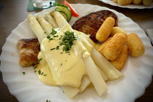 Wir waren heute dort essen und sind enttäuscht. "KEINE KARTENZAHLUNG" steht an der Tür. Wir mussten erstmal checken ob das Bargeld reicht. Absolut nicht zeitgemäß, die Bedienung war direkt genervt. Vielleicht weil wir die ersten Mittagsgäste an diesem Tag waren und sie sich bewegen musste. Bei der Getränkebestellung wurde jeder gefragt "groß oder klein?". Sie war sichtlich genervt dadurch, aber die Karte gibt diese Information nicht bei allen Getränken her. Viele stehen nur in einer Größe drauf und daher wird das wohl der Kunde nicht automatisch mit dazu sagen. Die Getränke waren O.K. bis auf das Bier, welches nicht gut geschmeckt hat. Wir kommen aus der Region und wohnen im Umland und das Bier vom Faß war einfach nicht lecker. Die Getränke kamen zügig und danach haben wir das Essen bestellt. Dieses ließ ein paar Minuten auf sich warten, was ja auch OK ist, ist ja nicht MC Donalds. Das Ambiente hat auch mich zurückversetzt vor 35 Jahren, war es normal und es ist auch O.K. hochmodern würde auch nicht zur Region passen. Zwischendurch kam die Bedienung und stellte einem von uns kommentarlos einen Salat hin. Ich glaube es war nicht der Richtige von uns, der den Salat bekam, da genau diese Person auf seinem Essen auch einen Salat hatte und ein Anderer hatten keinen drauf. Dann kam das Essen. Ich muss ehrlich sagen für diesen Preis hätte ich etwas besseres erwartet. Es ist ein mittelpreisiges Restaurant, aber die Speisen die wir hatten waren nicht gut. Die Kräuterbutter auf dem Steak war zu stark gewürzt, das Steak war mehr als tot, es war zu durch und damit trocken. Bei den anderen Gästen von uns waren das Steak und Schnitzel genauso trocken und zu lange gegrillt oder in der Pfanne. Die Pilzsauce war leider nicht lecker, schmeckte wie 0815 Tütensauce. Das Steak ou four war leider genauso eine Enttäuschung. Als ich nur noch wenig auf dem Teller hatte, habe ich einen Schluck getrunken und die Bedienung wollte direkt meinen Teller abräumen. Wie liegt das Besteck, wenn ich fertig bin? Da während dem ich gegessen habe, schon die Teller der Anderen abgeräumt wurden, kam ich mir so vor, als sollte ich schneller essen. Das macht man nicht und vernünftiges Personal sollte das wissen.