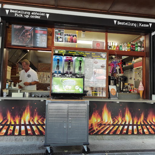 Beim Lokal handelt es sich um eine Massenabfertigungsanlage, es gibt Automaten an denen bestellt und bezahlt werden kann, wer keine Karte bei hat kann auch am Schalter bezahlen. Am Automaten kommt erst einmal aber keiner vorbei. Daneben gibt es mehrere Monitore, wodurch zusammen mit den Automaten eher MCDONALD'S Flair als dem einer Grill bude aufkommt. Die Wartezeiten sind auch bei Andrang relativ kurz, je komplexer und größer die Bestellung ist desto länger dauert es natürlich.