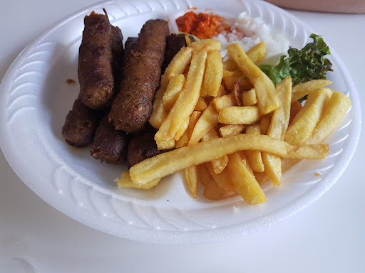 Zuhause angekommen: Grillteller ohne Mayo ( aber Bezahlt). Beide Cevapcici Teller MIT ZWIEBELN (wurde extra gesagt ohne Zwiebeln) UND Pommes? Konnte man an einer Hand abzählen. Es sollten mehr Pommes sein als die Normale Portion weil ohne Salat Bestellt, aber nein es waren weniger Pommes als beim Grillteller der mit Salat bestellt war (also normale Portion) und viel weniger Pommes waren es bei den 2 Cevapcici Teller als beim Kinderteller Max und Moritz (mit der Normalen Portion Pommes SIEHE FOTOS)