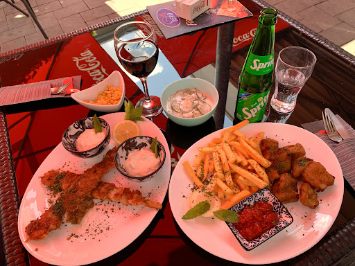 Das Essen (2 x Seelachs) war sehr schmackhaft und frisch zubereitet, hätten es sehr zu schätzen gewusst, wenn auch noch ein kleiner Eisbergsalat mit etwas Tomate dazu gereicht worden wäre, dann wäre es 5 Sterne wert gewesen. Es war schade, dass es hier leider kein alkoholfreies Weizenbier zum Essen gab, hoffe der Chef bietet demnächst auch mal dieses Getränk an, vor allem in der Sommerzeit. Ansonsten, fanden wir es ärgerlich und bedauernswert, dass man soweit zur nächsten Toilette laufen muß, war mit einer älteren über 80 jährigen Dame hier, hoffe inständig, dass das Schild [Defekt] an der Toilette vor Ort, schon sehr bald verschwindet und man nicht mehr durch das halbe Einkaufszentrum laufen muss, um die Toilette kurz aufzusuchen. Alles in allem war der Genuss der Speisen wirklich gut, was uns auch gefreut hat ist die Nettigkeit und das freundliche Lächeln der sympathischen Servicekraft, die alles kompetent im Griff hatte. Wenn beim nächsten Besuch, die Toilette funktioniert, es Weizenbier im Angebot gibt und ein kleiner Salat zum Fischgericht serviert wird, dann werde ich mit großer Freude, in allen Kategorien 5 Sterne...
