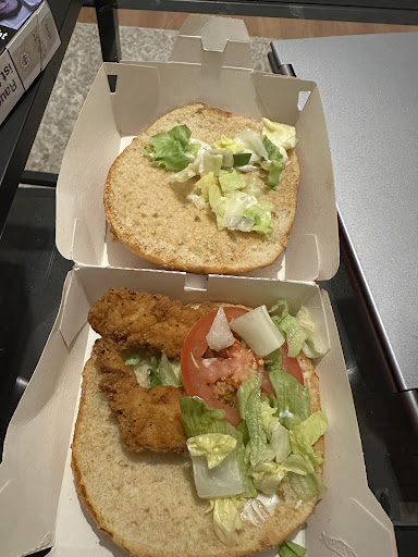 Essen ist für den Preis ausreichend. Nun das große ABER. Ich habe zwei vegane Menüs bestellt. Vegan New Yorger und Vegan Crunchy. Ich gab die Bestellungen auf und wurde nebenbei gefragt, ob ich normal möchte. Ich dachte, das bezieht auf die Größe, da ich zwei vegane Menüs bestellt hatte und zum 'normal' auch keinerlei weitere Erläuterung kam. Zuhause angekommen angefangen zu essen. Meine vegane Lebensgefährtin hatte das vegane Crunchy Menü aß und ließ mich probieren. Ich als Flexitarier sagte noch der Burger schmeckt aber fast wie echtes Chicken. Als ich dann in mein Vegan New Yorker Burger biss wurde sehr schnell klar, dass es sich nicht um ein veganes Menü handelt. Über diverse Telefonate konnte man sich nicht einigen. Ja, man hätte vor Ort auf den Kassenbeleg schauen können. Aber es wurde keins der beiden Menüs als vegan gebucht. Sondern mit Fleisch. Uns, dem Kunden, wurde die Schuld mehrfach zugewiesen. Man hätte ja gefragt ob man normal möchte. Wenn ich also zwei vegane Menüs bestelle und nach den Getränke-/Beilagenwahl die Frage nach 'normal' kommt, dann bedeutet, dass der Kunde Fleisch bestellt. Auch wenn man vegane Menüs bestellt hat. Ich bin nach wie vor der Meinung, dass ein 'normales' vegane Menü, nach wievor Vegan sein muss. Und diese 'Entschuldigung' bei Burgern in dieser Preisklasse, mit solchen Folgen, ist einfach nicht akzeptabel. Wenn man Allergien hat, kann man sich nicht so einfach rausreden. Für mich war es nicht so schlimm, aber meine Lebensgefährtin verträgt so etwas einfach nicht. Und hatte den kompletten restlichen Tag Bauchkrämpfe und musste sich mehrfach übergeben.