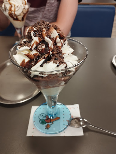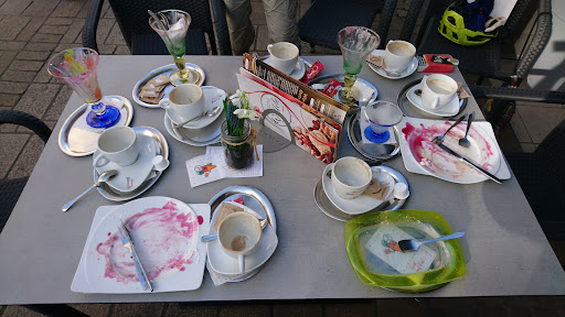 Read moreWurden beim ankommen nicht begrüßt und die Bedienung wirkte sehr genervt über unser Erscheinen. Bestellt habe ich mir einen nussbecher und Eistee. Die Bedienung konnte mir aber nicht sagen was für ein Eistee das ist. Beim Eisbecher schmeckte die Sahne stark künstlich, dass Eis perse war aber lecker. Aber die kugelsorten waren irgendwie nicht abgesprochen oder fest, weil es andere waren als beim letzten Besuch. Das Wasser meines Partners kam still obwohl es Sprudel sein sollte und warum auch immer kostet sowohl ein wasser als auch mein eistee gleich viel, trotz selber menge!? Nach dem Verzehr hat die Bedienung unseren Tisch abgeräumt ohne mit uns zu reden, zu fragen ob alles ok war oder uns überhaupt anzuschauen. Preise auf der Karte wurden mit Folienstift geschrieben, z.T nicht leserlich oder weggewischt: Beispiel Bienemaja becher ".80ct"