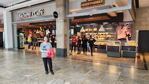 Für das CentrO in der Größe ein nettes Ambiente. Ich wurde schon fast zu schnell bedient. Das Personal kam mir vor wie Fließbandarbeiter: Es wirkte genervt und ich habe mich sofort unter Druck gesetzt gefühlt, eine Entscheidung zu treffen, was ich nehme, obwohl ich kaum Gelegenheit hatte, in die Vitrine zu sehen. Als ich fragte, welcher Tee vorhanden ist, wirkte die Verkäuferin ziemlich genervt. Kundenfreundlichkeit geht anders. Die appetitlich aussehende Tomatenschnitte war leider viel zu kalt. Das hat natürlich dem Geschmack geschadet. Positiv: Ich habe trotz des Zulaufs einen sauberen Platz vorgefunden. Die Auswahl in der Vitrine war großzügig.