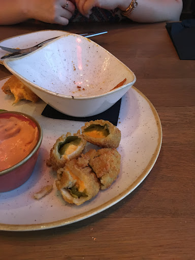 Ordered jalapeño poppers, a dry aged ribeye, a tomahawk, mac n cheese, and potatoes. Look carefully at the definitions of rare, medium, well done, etc... this place has each level defined at 10 degrees below the standard in the U.S. I kept this in mind while ordering and asked for a medium rare knowing it would come out rare (125 Fahrenheit internal). Jalapeño poppers came out still frozen in the center. I think any reasonable person would immediately cut their losses and leave right there. For some reason I showed the waiter our frozen poppers and got them replaced. This was another red flag on top of the definitions, but since it is not a jalapeño popper house, I just ate the replacements and looked forward to the steaks. The steaks finally came out and are the reason for this 1 star review. I can’t even imagine why someone who cooks a steak like this would open a steakhouse. It was like someone made every effort to make the steak look as if it’s been professionally cooked without actually cooking it. None of the fat was rendered, the portion of meat in contact with the bone was room temp, the surface was seared at a very low temp on one side and hardly touched on the other. I spent 3 minutes chewing the first bite before spitting out what looked like a folded up receipt that went through the washer. I actually kept powering through, pretending it was not so bad just to avoid ruining dinner for my wife. She said her steak was about a 2/5, way higher than I expected. I took some pictures of the frozen poppers and the horrible rubber-like pieces of my steak that I...