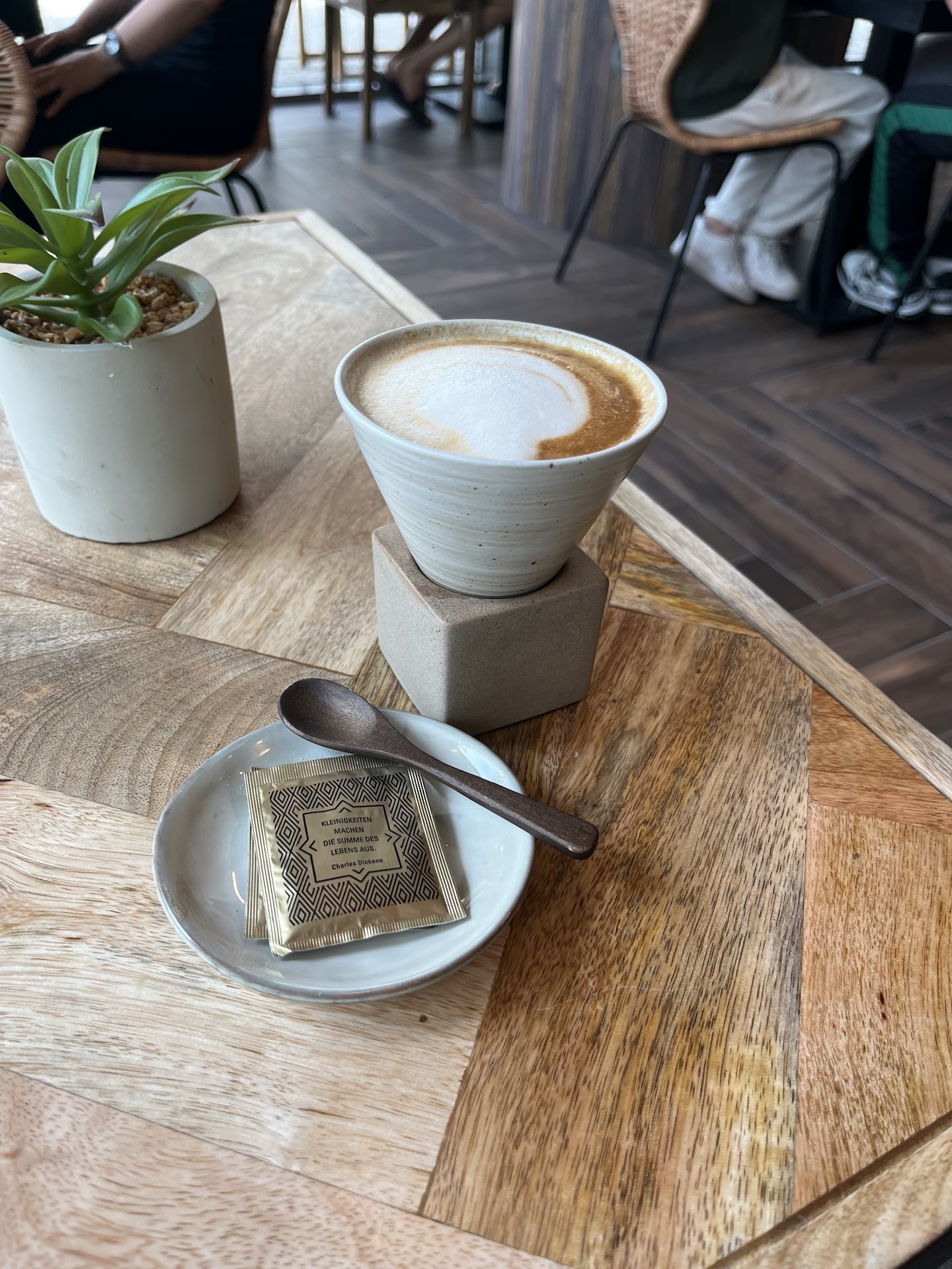 Das Ambiente? Traumhaft schön! Das Café ist mit so viel Liebe zum Detail eingerichtet, dass man sich fühlt wie ein kleiner Kurzurlaub in tropischer Atmosphäre. Alles ist sehr stilvoll und gemütlich, man möchte am liebsten stundenlang sitzen bleiben.