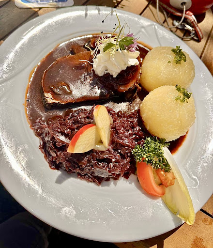 Wir hatten einen Schwarzbierbraten und meine Frau Hirsch - anschließend Kaiserschmarren.