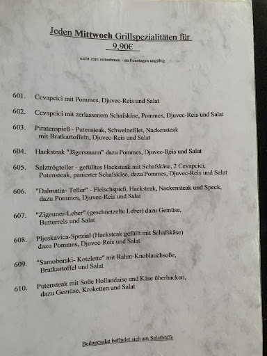 Read moreWie ein Gast vor mir kann ich das Lokal nicht weiter empfehlen. Wir waren mit einer Gruppe von ca. 20 Personen unterwegs und sind Abends dort eingekehrt. Angefangen mit einer sehr kühlen Begrüßung durften wir unsere Plätze einnehmen. Getränke- und Essenbestellung ging sehr zügig (einzige gute Sache). Zu meinem Gericht gab es einen Beilagensalat von der Salattheke. Die Salattheke war übersichtlich und nach genauerem Hinschauen nicht mehr so appetitlich, nach dem der Schwarm Fruchtfliegen auf dem Gemüse ersichtlich war… Nach etwas längerer Wartezeit kam dann endlich das Essen, die Küche scheint wohl nicht mit größeren Gruppen zurecht zu kommen, trotz kleiner Speisekarte. Gerichte waren essbar, habe aber schon deutlich besser kroatisch gegessen. Als wir noch Getränke ordern wollten, bediente uns der Besitzer aus unerklärlichen Gründen nicht. Nach ca. 5-10 min tauchte er doch irgendwann auf. Alles in allem ein...