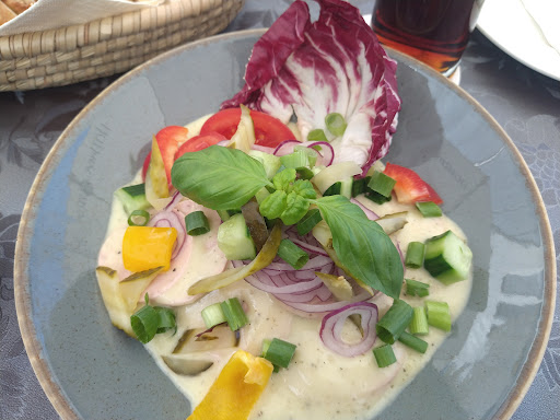During my visit, it was quite busy on a weekday evening. In my opinion the location is not to cosy, but ok only. As a starter I had a Brezenknödelcarpaccio, which was ok in taste. It came with mushrooms and a tiny salad. I just personally think, that it somehow was not made with pretzels, but with regular bread dumplings instead. Unfortunately it was garnished with crema di balsamico, which is a no go to my mind. As a main I ordered a portion of asparagus accompanied by potatoes and sauce hollandaise. It was ok too. The service was friendly and fast,...