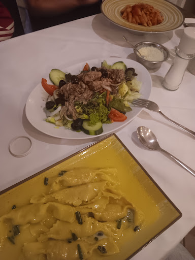 Read moreHeute waren wir in der "Osteria del Duca". Wir haten Penne Arabiata, Pizza Salami und Tortellini mit Lachsfüllung, dazu einen Salat Nizza und 3x Spezi. Die Penne war gut so auch die Salami Pzza und die Gefüllten Tortellini sehr gut. Der Salat auch top. Die 3 Spezi haben es etwas runter gezogen, man hat den Billigspezi geschmeckt. Das Ambiente war auch ok, etwas zu voll und eng, aber noch immer Rahmen. Der Kellner auch sehr freundlich und wir haben ab dem eintreffen bis zum Essen gerade mal 10-12min. gewartet, absolute Spitzenzeit. Können wir auf jeden Fall empfehlen, eventuell vielleicht vorher Reservieren. Wir hatten vielleicht Glück das wir einen Platz bekommen haben. Der Preis 60€ absolut...