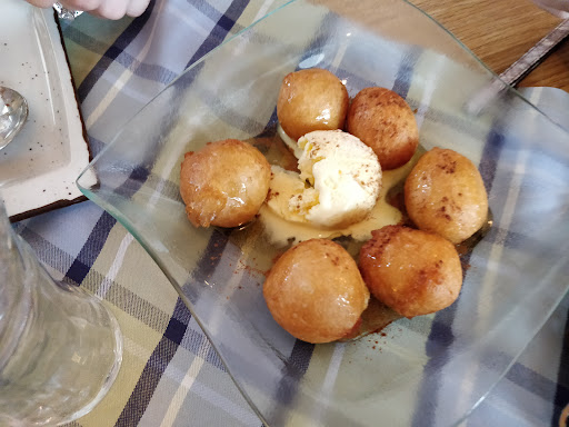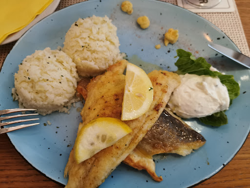 Read moreDas Essen war leider ein totaler Reinfall. Aus gesundheitlichen Gründen muss ich aktuell eine Diät mit Salz Verzicht einhalten. Deswegen hatte ich eine gegrillte Dorade aus dem Menü gewählt. Der Kellner sagte mir, dass die Beilagen gesalzt sind und man dies nicht ändern kann, da sie vorbereitet sind. Aber die Dorade wird frisch zubereitet, also könne man mir anbieten auf Salz beim Fisch komplett zu verzichten. Also habe ich die gegrillte Dorade bestellt. Und was habe ich bekommen? Es war ein fettiger in der Pfanne gebratener und total übersalzter Fisch. Er war so salzig, dass sogar mein Mann, der eigentlich immer gut gesalzt isst, den Fisch nicht essen konnte. Der Reis dazu war gerade noch OK, ich habe aber bei anderen Tavernen bereits leckeren Reis gegessen. Von einer gegrillten Dorade kann also nicht die Rede sein (sie war in Öl gebraten) , von daher war die Angabe in der Karte total gelogen! Und die Situation mit dem Salz war sehr sehr ärgerlich. Es war auch eine Lüge. Mir wurde versichert, dass eine Dorade ohne Salz überhaupt kein Problem ist. In mehreren Restaurants habe ich bereits grillplatten bestellt und es war immer alles in Ordnung. Ich habe hier aber letztlich 23 EUR für 2 Häufchen Reis bezahlt. Der Laden war ziemlich voll, deswegen mussten wir recht lange auf die Getränke warten. Erst kam ein Bier für meinen Mann. Dann musste ich noch Ewigkeiten auf meinen Cappuccino warten. Fazit: Sehr enttäuscht und nie wieder. Man wird nur angelogen und verarscht. Und im Nachhinein bekommt man noch so eine freche...