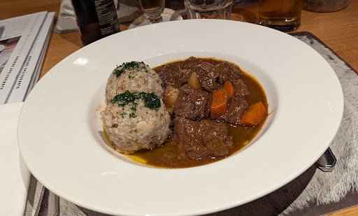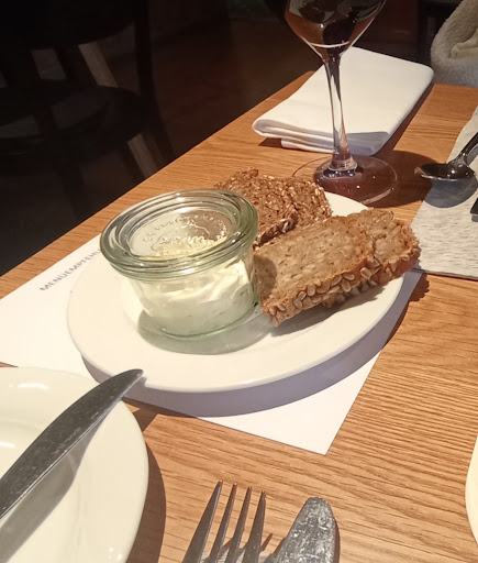 Read moreNachdem der Aperitif gereicht worden war, wurde Brot mit einfacher Butter als Gruß aus der Küche dazu gereicht. Andere Restaurants in Oberstdorf reichen wenigstens zwei verschiede Buttersorten. Nachdem die Zeit weder für den Aperitif noch für das Brot gegeben war, wurde bereits der Hauptgang gebracht. Da wir dazu jeweils einen Wein trinken wollten, kam auch dieser und eine Karaffe Wasser. Kommentar dazu:"Nun haben Sie ja genug Getränkeauswahl." Jetzt standen also auf einem max. 1qm großen Tisch: 2 Gläser Aperitif, 2 Vorlegeteller, 1 Teller mit Brot, 1 Teller mit Butter, 2 Teller mit Hauptspeisen, 2 Bestecksätze, 2 Gläser Wein, 2 Gläser für Wasser und die Karaffe mit Wasser. Nicht zu vergessen eine Tischdekoration. Gemütliches Speisen geht anders. Das Fleisch war teilweise zäh. Als unser Nachbartisch das auch reklamierte gab es den Kommentar:“Da steckt man nicht immer drin.“ Als ich zur Bezahlung meine Kreditkarte vorlegte gab es den lauten Kommentar:“Die Karte nehmen wir nicht.“ Das war für mich keine Problem, da ich noch weitere Kreditkarten bei mir hatte. Einige Tage zuvor saßen wir im angeschlossenen Biergarten. Meine Bank stand so unsicher, dass ich damit umgekippt bin. Glücklicherweise ist mir nichts passiert. Das Personal fragte nur aus der Ferne, ob alles in Ordnung wäre. Eine Entschuldigung gab es nicht. Fazit: Es gibt in Oberstdorf gleichwertiges, bzw. besseres Essen zu günstigeren Preisen. Auch der Service ist überwiegend freundlicher und qualitativer. Dieses Restaurant ist künftig für uns keine Option mehr, da es in Oberstdorf genügend...