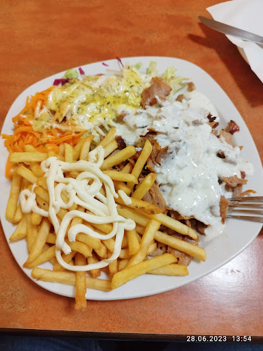 Read moreDa die Verantwortlichen im Ort nicht möchten dass Döner verkauft wird gibt es hier, Putendrehspießteller (im folgenden als Dönnerteller bezeichnet) und Putendrehspießbrottasche. Da mußte ich doch herzlich lachen. Das Ehepaar im Laden war sehr freundlich zu mir. Der Dönnerteller war lecker. Vor allem war eine sehr große Portion Salat dabei mit einem guten Dressing. Die Pommes waren gut zubereitet aber ich mag lieber die dicken Pommes. Das lokal liegt direkt an einer belebten Straße, die Tische draußen stehen ohne Abgrenzung direkt an der Straße, da mag ich nicht essen. Ich habe drinnen gegessen. Dort gibt es ein paar Tische mit Stühlen und einen hohen Tisch am Fenster mit Hockern oder zum stehen. Funktional eingerichtet. Alles so weit sauber. Preise eher günstig....