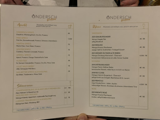 Durch Zufall im ersten Urlaub in Oberstdorf entdeckt, ist das Ondersch mittlerweile zu unserer Adresse Nummer 1 dort geworden (nach Ausprobieren einiger anderer Restaurants vor Ort). Das Konzept mit der Unterteilung in zwei Bereiche â Streetfood bzw. Genusswirtschaft â ist einzigartig und stark umgesetzt. In beiden Bereichen gibt es ĂŒbersichtliche Speisekarten, die saisonal mehr oder weniger stark abgeĂ€ndert werden. Ob Comfort Food vom Feinsten (im Streetfoodbereich) oder aber gehobenere KĂŒche (Genusswirtschaft) â bei beidem merkt man, dass hier mit Herzblut gekocht wird. Die Zutaten sind allesamt von hoher QualitĂ€t, die Verarbeitung und Zusammenstellung exzellent. Insbesondere in der Genusswirtschaft darf man sich auf grandios zubereitetes Fleisch mit herausragenden SoĂen freuen. Der Service insbesondere in der Genusswirtschaft sucht seinesgleichen â ausgesprochen aufmerksam und freundlich, mit einem Blick fĂŒrs Detail und fantastischen Weinempfehlungen. Auch im Streetfood ist der Service gut â allerdings natĂŒrlich durch die gröĂere Anzahl an GĂ€sten nicht mit der Genusswirtschaft zu vergleichen. Als âWiederholungstĂ€terâ haben wir nun auch schon mehrfach gezeigt bekommen, dass unsere WertschĂ€tzung des Restaurants ebenfalls gewertschĂ€tzt wird (z.B. durch das ZurĂŒckhalten einer nicht immer auf der Karte stehenden Vorspeise fĂŒr uns). Das Preis-Leistungs-VerhĂ€ltnis ist in unseren Augen ebenfalls absolut gerechtfertigt. Alles in allem â fĂŒr uns mittlerweile unser absolutes Lieblings-Restaurant. WĂŒrden wir in Oberstdorf wohnen, wir wĂ€ren StammgĂ€ste. So mĂŒssen wir uns heute bereits auf den nĂ€chsten Urlaub und die damit verbundenen Besuche im...