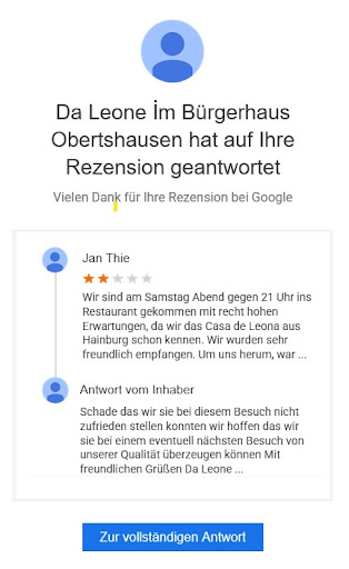 UPDATE 11. März 2022: Ich erhielt heute eine Nachricht von Google mit einer Beschwerde über meine Rezension. Da ich hier allerdings meine tatsächlichen Erfahrungswerte teile, zweifele ich, dass die Gesamtwertung des Restaurants für voll genommen werden kann. Es werden hier anscheinend ohne Begründung gegen schlechte Bewertungen anwaltliche Schritte vorgenommen. Das macht ihr Lokal noch lächerlicher. Gerade auch, weil Sie mir auf die ursprüngliche Nachricht noch geantwortet haben, aber diese Antwort wieder gelöscht haben.