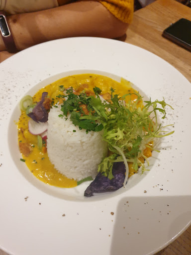 Das Speisenangebot empfangen wir als vergleichsweise klein, aber abwechslungsreich: Salate, Vegetarisches, Fisch, Fleisch, Suppen, Süßspeisen und Kuchen - alles dabei. Unser Essen schmeckte gut, insbesondere der Salat mit Ziegenkäse (13€!) war üppig, die Schweinebäckchen sogar etwas zu zart für meinen Geschmack. Nichtsdestotrotz hätte dem Preisniveau eine zusätzliche Servicekraft gut getan: Bei über 6€ für einen Teller Kürbissuppe warte ich ungern zehn Minuten aufs Brot. Freundlich und hilfsbereit waren die Kolleginnen jedoch trotz Stress und vollem Haus.