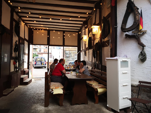 Read moreEssen kann ich nur bedingt beurteilen, da wir einfach nur Pommes wollten und einen gebackenen Camenbert ( 8,50 Euro). Beides ok, aber die zwei Camenbert waren schon sehr klein, der Beilagensalat aber dafür sehr frisch. Es sitzen ca. 6 Leute (draussen und drinnen) vor Ort, es riecht nach altem Fett, wir werden aber freundlich begrüsst. Die ex-Deutsche Kneipe mit Hindenburg Bild an der Wand gleich neben dem Wärmeei für's Bett aus Metall und dem Reichsadler im Regal, hat ihre besten Zeiten gesehen. Etwas neue Farbe. Rustikal hochdeutsche Küche..aha , wird jetzt wohl indisch geführt. Der Verlauf mit den wirklich deutschen Kneipen ist erschreckend. Der Hof mit Biergarnituren bestückt bietet um Sommer sicher angenehm Schatten. Es gibt leckeren Äppler vom Walther und wie bereits genannt ohne Wertung für das eigentlichen Essen, da bei Pommes rot/weiss das nicht fair wäre. Für das Ambiente lohnt es nicht, obwohl hier noch viel Luft nach oben ist.... Trinkt was und beurteilt selbst, wir...