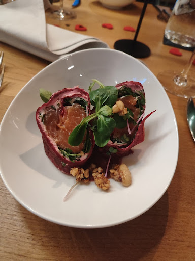 Read moreFirst class dining experience and a great alternative to the traditional restaurants in the neighborhood. As a vegan, I always research locations prior to traveling to places. Had an early dinner there on a Saturday with 5 girlfriends. Amazing and very attentive service. Food was not only presented in a beautiful way, it was simply delicious. There were quite a few vegetarian options on the menu. We ordered cheese-filled pizza rolls (7€) as a starter to share and I had truffle/ Parmesan fries (6€) with Brokkoli (5€) The entire place with fireside and soft music in the background is the perfect way to end a day in the mountains. More vegan dishes would...