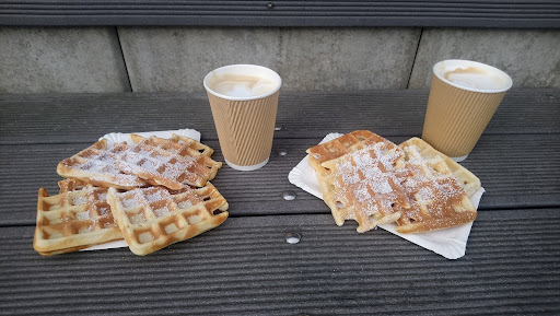 Super cooler Typ der in seinem kleinen Imbisswagen leckere Snacks, Crêpes, Waffeln, Kaffee/Cappuccino und kalte Getränke anbietet. Das Ambiente ist sehr Familiär und passend einfach gehalten. (Speisekarte ändert sich aber vielleicht zur Jahreszeit) Wir hatten an dem Tag Waffeln mit Hauseigener Schokosoße, Herzhafte Crêpes und Kaffee. Alles sehr lecker.