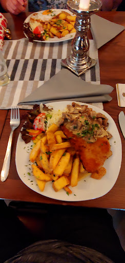 Strandidyll is a hidden little gem we discovered while looking for a break from Autobahn 12, as an alternative to the usual gas station restaurants along the highway. The food is simple but tasty, with a straightforward menu featuring schnitzels, ragouts, currywurst, fish and chips, salads, and more. During our visit, there was also a special chanterelle menu with several dishes incorporating them, which was a nice seasonal touch.