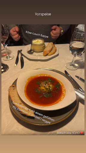 • Vorspeise: - Wir haben uns für keine Vorspeise entschieden, haben aber einen kleinen Gruß aus der Küche in Form von einer überbackenden Bruscetta erhalten. Nette Geste.