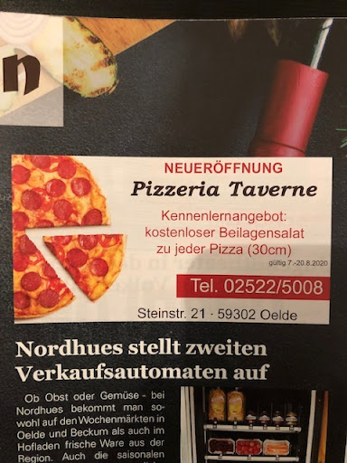 Wir sind durch das Oelder Schaufenster auf den Betreiberwechsel der Pizzeria Taverne aufmerksam geworden und wollten heute (09.08.2020) gemeinsam mit unserer Familie Pizza bestellen. Leider gab es jedoch weder über die homepage, noch über die Facebook Seite eine Speisekarte, weswegen wir diese vorher vor Ort in der Pizzeria einholten. Nachdem jeder das ausgesucht hatte was er essen wollte, riefen wir an und bestellten unsere Pizzen / Nudeln. Das war um ca. 17:15 Uhr. Am Telefon sagte man uns, die Bestellung sei in etwa 40- 45 Minuten vor Ort. Als um 18:30 immer noch niemand klingelte, riefen wir dort erneut an. Dann sagte man uns, man wolle prüfen wo die Bestellung ist und möchte sie dann ganz schnell liefern. Okay, das kann passieren, grade wenn man den Laden neu übernommen hat. Um ca. 18:50 Uhr war dann die Pizza da. Der Pizzabote hatte allerdings keinen einzigen Beilagensalat dabei, den es als Eröffnungsangebot dazu geben sollte. Dies war auch im Oelder Schaufenster so annonciert (Foto anbei). Am Telefon hatte uns man auch explizit nach dem Dressing des Salats gefragt. Blöd. Auch kam keine kleine Pizza Estate für 6,00€, sondern stattdessen eine kleine Margherita für 4,50€. Vom Pizzaboten wurde aber der volle Betrag, trotz falscher Auslieferung, eingezogen. Nun riefen wir erneut an, um unsere falsche Bestellung zu melden. Dort sagte man uns, dass die Salate bereits alle weg seien (um 18:30 Uhr ?!) und das viel zu tun sei (womit auf einem Sonntag Abend eigentlich immer zu rechnen ist) und das kurzfristig ein Koch ausgefallen sei (was natürlich mal passieren kann). Man sagte uns, wir sollten beim nächsten Besuch einfach sagen, dass mit unserer Bestellung beim letzten mal was nicht geklappt hat und dann bekämen wir ein Tiramisu aufs Haus. Okay, brachte und zu diesem Zeitpunkt aber kein Stück weiter, da auch keiner mehr Salate oder zumindest die richtige Pizza vorbei bringen wollte. Insgesamt rundum enttäuschend. Als ich dann meinen Karton öffnete fiel mir auf, dass die versprochene und bezahlte 30cm Pizza nie und nimmer 30 cm breit war, deshalb habe ich nachgemessen, was ich nie zuvor gemacht habe, aber an der Stelle fühlte ich mich bereits verarscht und sollte auch Recht behalten. Alle 30 cm Pizzen waren im Schnitt etwas über 27 cm. Und das fand ich nicht nur schade oder blöd, sondern schon frech. Wenn ich für eine 30 cm Pizza bezahle, dann erwarte ich auch eine 30 cm Pizza und nicht eine um 10% kleinere. Geschmacklich waren die Pizzen in Ordnung, in Schulnoten eine 3 - 3 minus. Für uns hat es sich erledigt; mieser, von Fehlern durchsetzter Service und eine schwache Außendarstellung. Da sind anderen Pizzerien in Oelde um Meilen besser als...