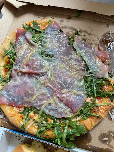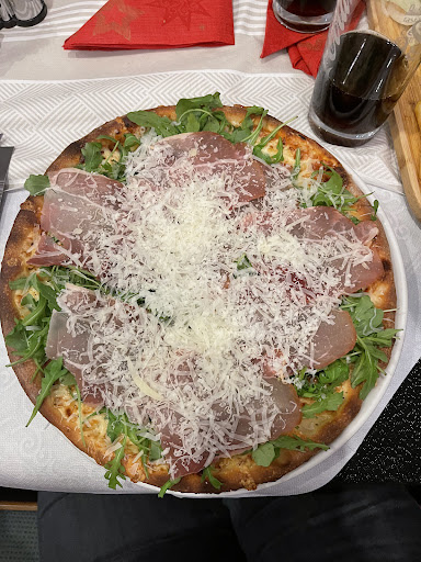 Die Pizza mit Parmaschinken war eine einzige Katastrophe. Der Schinken war lieblos drauf gelegt , der Parmesan Käse war kaum bis gar nicht vorhanden und die Pizza war ein einziges Öl Schlachtfeld. Deshalb wurde die Pizza auch nur kaum bis gar nicht angerührt.